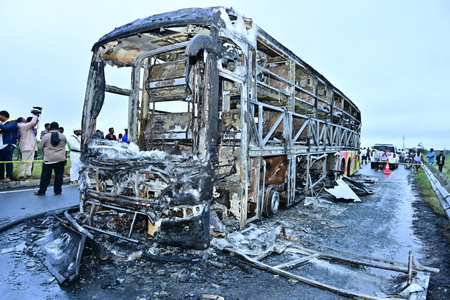 Kurnool (Andhra Pradesh): As many as 19 passengers were burnt alive as a private Volvo bus carrying over 40 people caught fire after hitting a two-wheeler in Andhra Pradesh’s Kurnool in the wee hours of Friday.