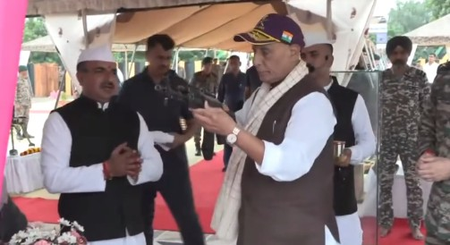 Defence Minister Rajnath Singh was at the Bhuj Air Base on the occasion of Vijayadashami, where he performed Shastra Puja.