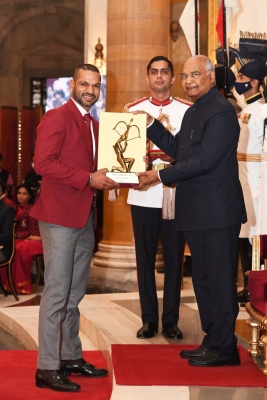 नई दिल्ली, 14 नवंबर (आईएएनएस)| अर्जुन पुरस्कार से सम्मानित होने के बाद भारतीय बल्लेबाज शिखर धवन ने अपने परिवार, दोस्तों और राष्ट्रीय क्रिकेट बोर्ड (बीसीसीआई) समेत उनका समर्थन करने वाले सभी लोगों को सोशल मीडिया के माध्यम से धन्यवाद किया। 35 साल धवन को शनिवार को खेल में उनके शानदार प्रदर्शन के लिए राष्ट्रपति रामनाथ कोविंद द्वारा अर्जुन पुरस्कार से सम्मानित किया गया।